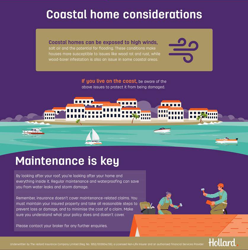Coastal homes can be exposed to high winds, salt air and the potential for flooding. These conditions make houses more susceptible to issues like wood rot and rust, while wood-borer infestation is also an issue in some coastal areas.